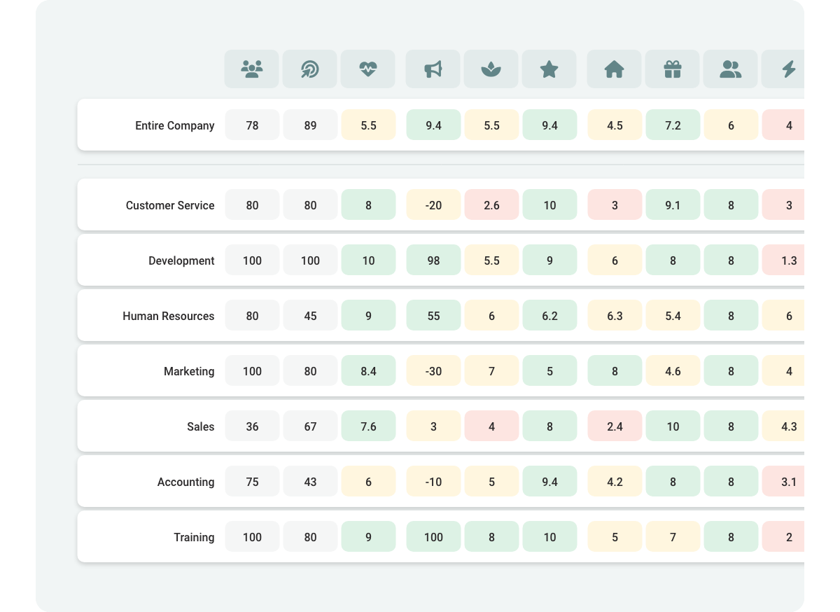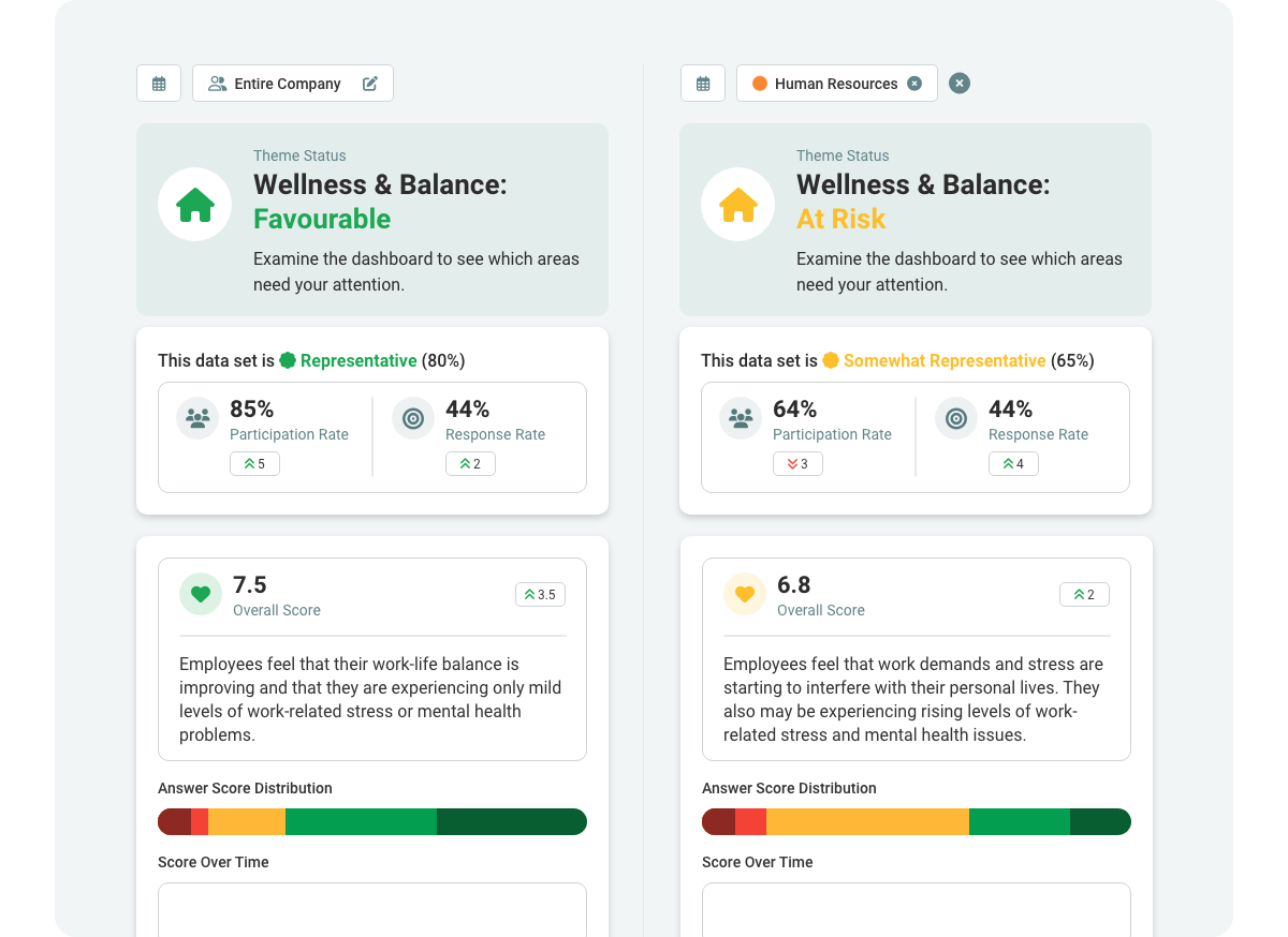 Measure burnout levels, work-life balance, and intrinsic motivation. Gain valuable insights to enhance employee well-being and drive peak performance.