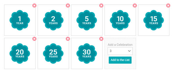 To add a milestone, click on the "Add to the List" square displayed on the screen. You will be prompted to select the anniversary year being celebrated and then confirm to add it to the list.