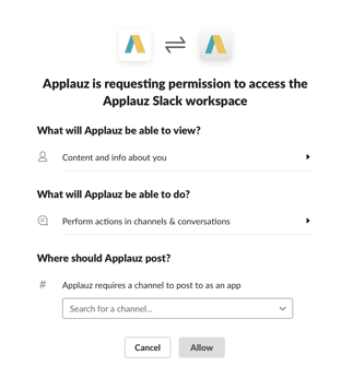 - Select the desired Slack channel for Applauz to post notifications to.