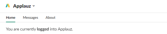- Back under the "Home" tab of the Applauz Slack app, you should see a message saying "You are currently logged into Applauz." if the connection was made successfully.