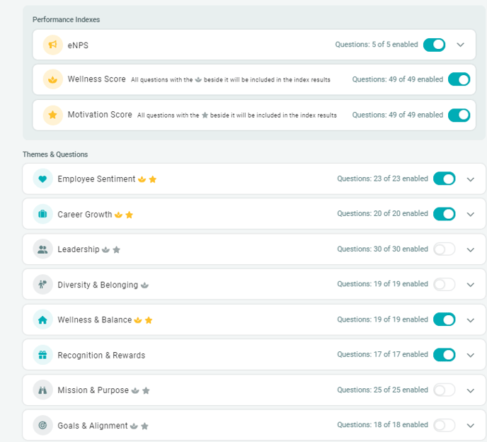 How to turn ON Pulse surveys, activate or deactivate questions & themes, and add your own custom questions.