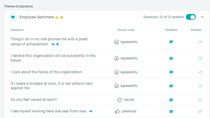 Don't worry, you can always edit, delete, or disable any of these themes or questions.