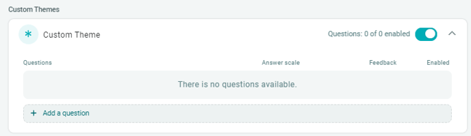 Here you can disable the entire theme by clicking the larger toggle button off. Or, you can disable singular questions by clicking off the smaller toggle next to each question.