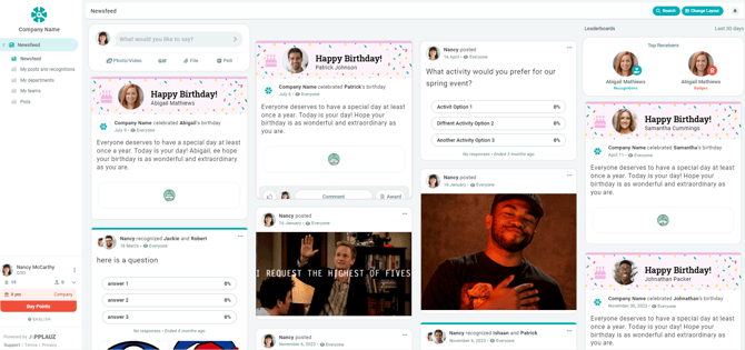The Applauz Newsfeed includes a Tiles view, which offers a visually appealing and organized layout. This interface makes it easier to engage with content.