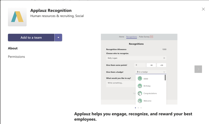 MS Teams users can install Applauz bot as a personal app or add it to a team. This is a relatively simple process.