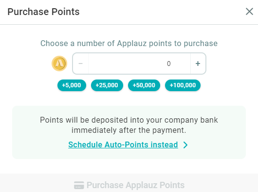 You will be directed to the Company Points Bank page, where you'll have the option of purchasing more points.