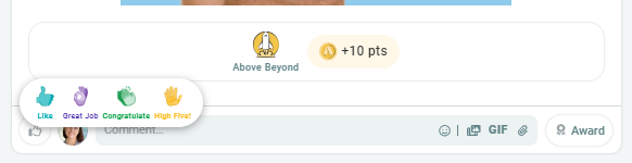The Newsfeed enables employees to “like,” “congratulate,” or publish a personalized post about their colleagues anytime they wish. Any participant can respond and react to a recognition post. Everyone can share their appreciation!