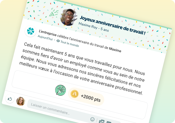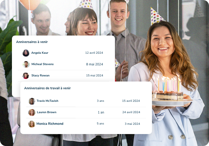 Reconnaissez les moments importants pour les employés en célébrant automatiquement les anniversaires de travail et les anniversaires de naissance des employés, créant ainsi une culture qui s'épanouit dans l'appréciation continue des employés.