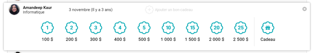 Votre liste d'employés vous sera présentée et vous pourrez choisir les employés pour lesquels vous souhaitez acheter un bon cadeau.
