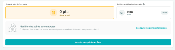 - Vous serez dirigé vers la page Banque de points de l'entreprise, où vous aurez l'option d'acheter plus de points.