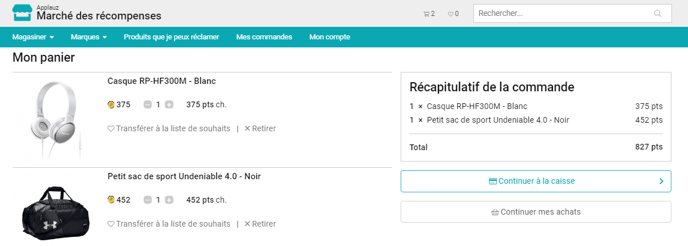 Le Marché des récompenses fonctionne avec les Points Applauz. Les employés qui ont gagné et économisé des points de reconnaissance peuvent accéder au Marché des récompenses pour acheter leurs propres récompenses quand ils le souhaitent.
