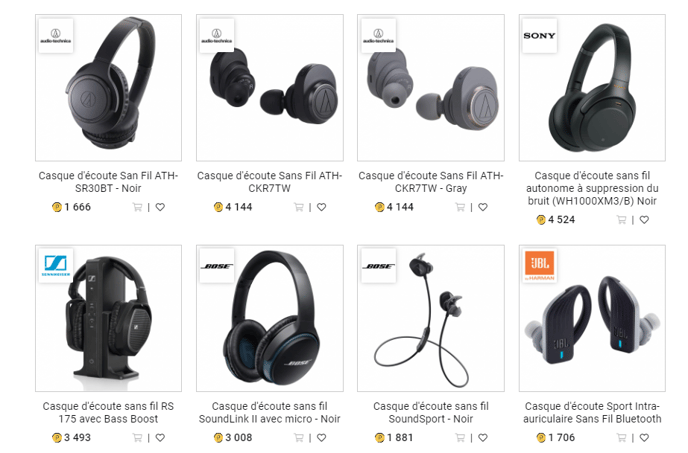 Les articles listés sur le Marché des récompenses sont affichés en utilisant la valeur équivalente en points du coût de l'article. En d'autres termes, au lieu d'afficher la valeur réelle en dollars, Applauz affiche sa valeur en points.