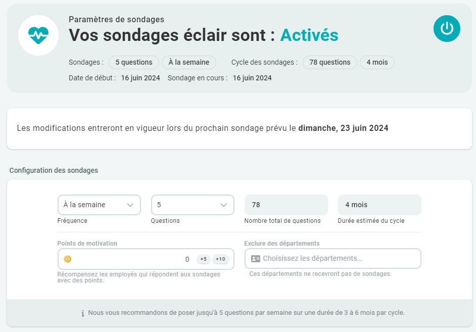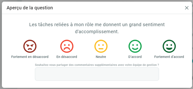 En bref, les employés peuvent se voir offrir des points lorsqu'ils répondent aux sondages. Cette fonction est conçue pour aider à stimuler la participation des employés, afin que vous puissiez obtenir les résultats les plus précis et les plus complets.