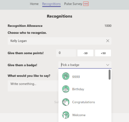 Lorsqu’Applauz est ajouté comme application personnelle, les utilisateurs de MS Teams peuvent :