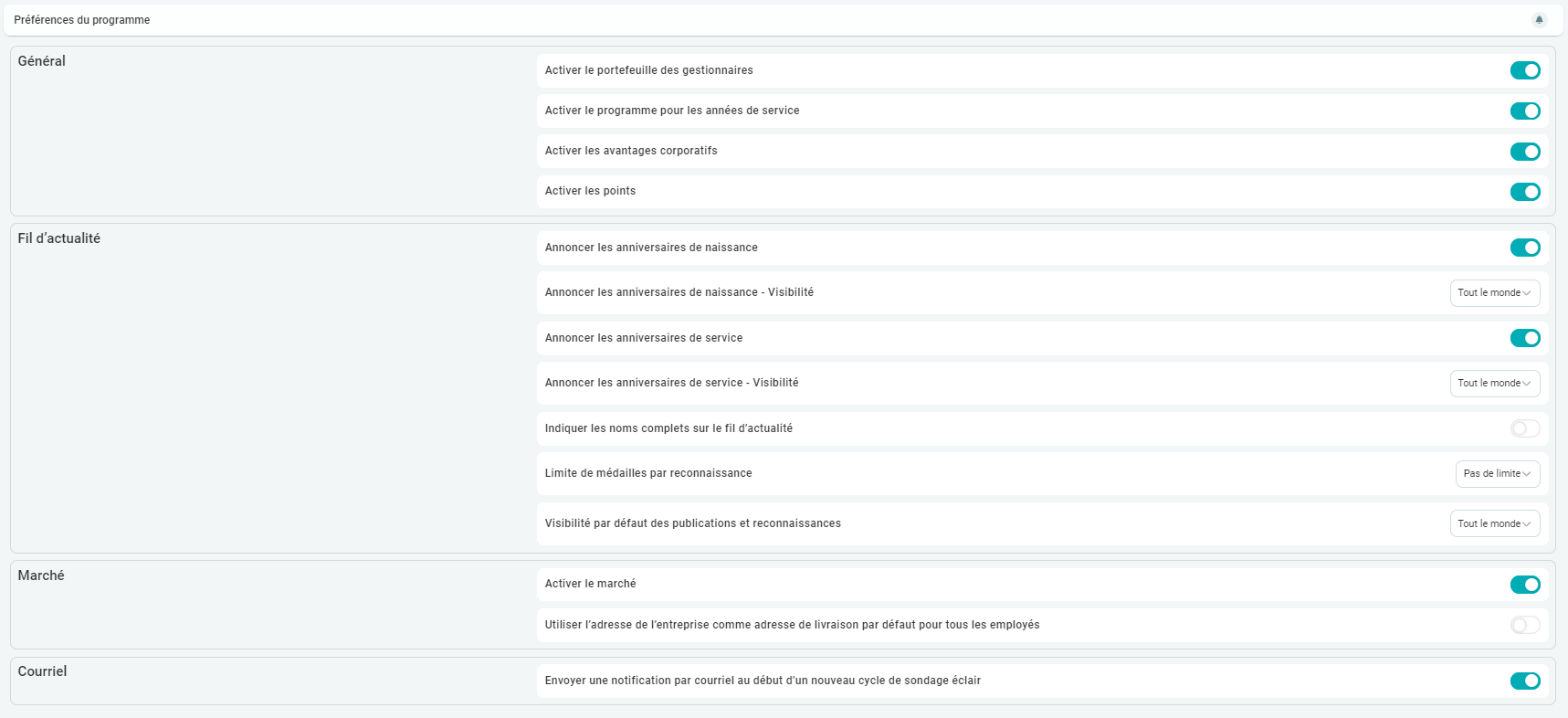 Pour optimiser votre programme de reconnaissance pour les employés, nous vous recommandons d'activer les trois premières fonctions.