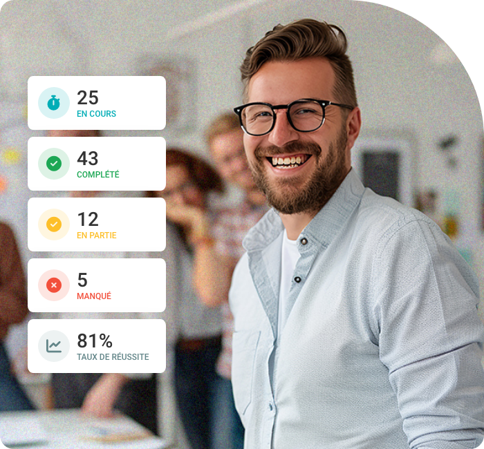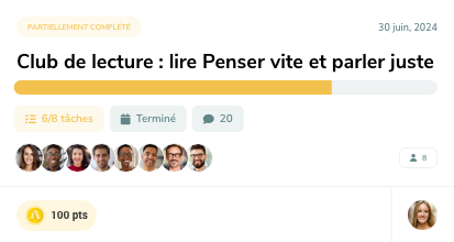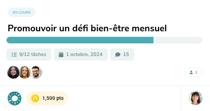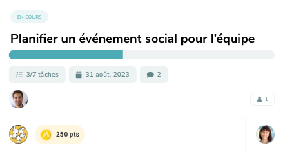 Fixez des défis individuels ou départementaux, basés sur le temps ou sur des conditions. Concentrez-vous sur les objectifs d'apprentissage, de développement et de gestion du changement. Utilisez les objectifs pour renforcer les valeurs de l'entreprise et motiver la performance.