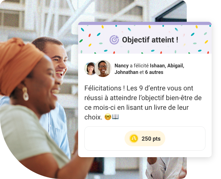 Les objectifs d'Applauz vous permettent de créer des objectifs de développement de la culture et de bien-être qui incitent les employés à se surpasser, à s'engager et à élever leur niveau de réussite.