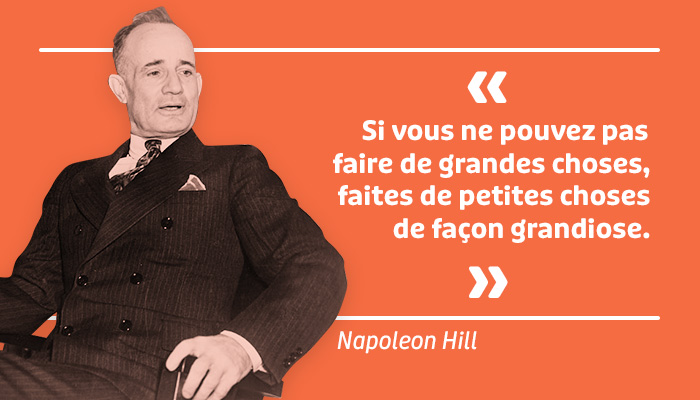 « Si vous ne pouvez pas faire de grandes choses, faites de petites choses de façon grandiose. » — Napoleon Hill