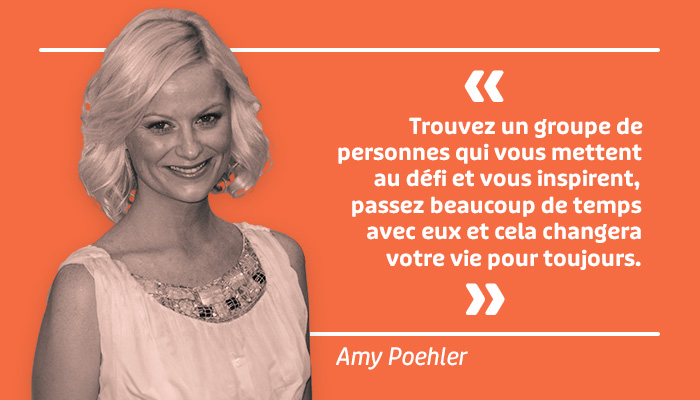 « Trouvez un groupe de personnes qui vous mettent au défi et vous inspirent, passez beaucoup de temps avec eux et cela changera votre vie pour toujours. » — Amy Poehler