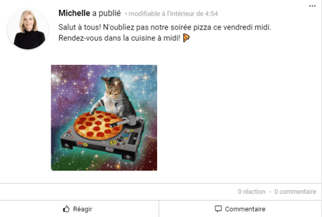 Le Newsfeed Applauz n'est pas seulement destiné à la reconnaissance entre pairs ; tout le monde peut faire une annonce générale et la poster sur le Newsfeed. Prenez l'habitude de poster des annonces dans le Newsfeed. Étant donné qu'Applauz est une plateforme sociale, cela est particulièrement important pour les événements sociaux.