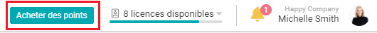 Les points peuvent être facilement achetés par les administrateurs d'Applauz. Le bouton se trouve à droite sur la barre de navigation principale ! Les points Applauz sont considérés comme votre monnaie de reconnaissance et feront passer votre programme de reconnaissance au niveau supérieur. Les points permettent aux employés d'être encore plus enthousiastes à l'idée d'utiliser Applauz, car ils leur donnent la possibilité de faire des achats de produits de marque de haute qualité sur le Marché des récompenses.