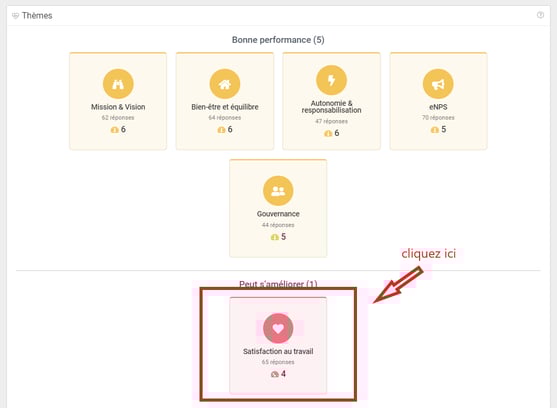 Cela dit, les sondages éclair sont un excellent outil de diagnostic. En d'autres termes, ils vous indiquent exactement les points faibles de l'expérience employé. Cependant, l'outil n'offre pas de solution ou de moyen de progresser - autrement dit, comment améliorer un thème spécifique.