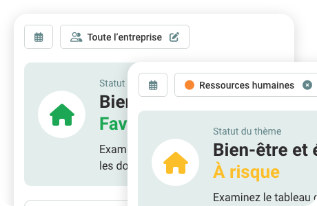 Obtenez rapidement une évaluation générale de votre situation pour tous les thèmes, départements et équipes.