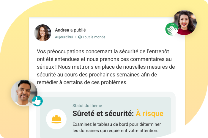 Concentrez-vous sur les sujets qui touchent les employés et soutenez les initiatives qui améliorent l'engagement des employés.