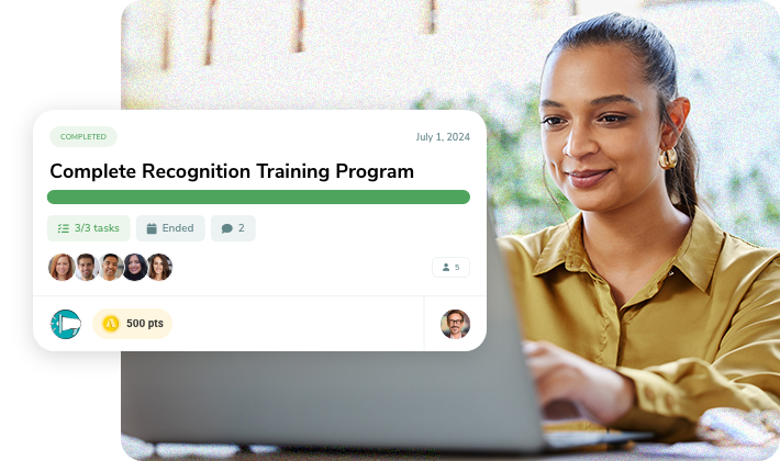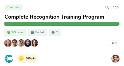 Set time-based or condition-based challenges for individuals or departments. Focus on goals for learning, development, and change management. Use goals to reinforce company values and motivate achievement.