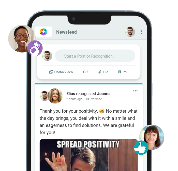 The Newsfeed strengthens your company culture, helps support deeper employee bonds, and creates positive moments among coworkers. It’s where employees connect, engage, and recognize each other, promoting a sense of belonging and teamwork throughout your organization.