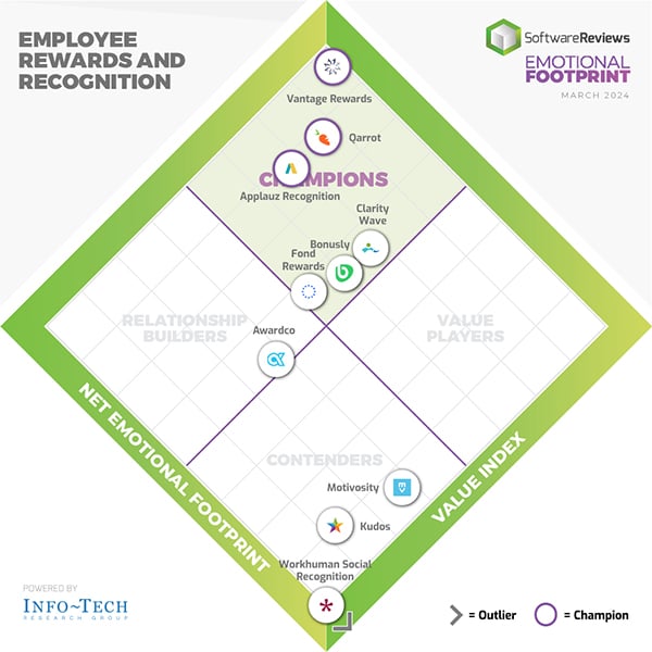 Montreal, Quebec – March 2024: Applauz proudly announces that Software Reviews has selected our Employee Recognition solution as a “2024 Emotional Footprint Champion” winner in the Employee Rewards and Recognition category.