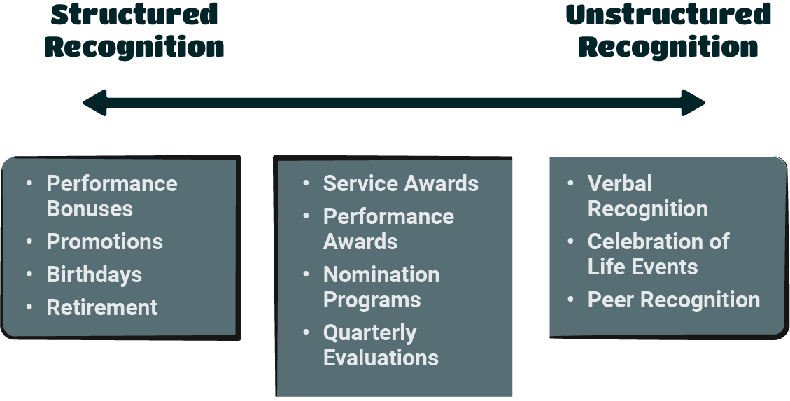 To that end, to grow greater appreciation at work, a mix of both structured and unstructured recognition needs to be present to fulfill different organizational goals.