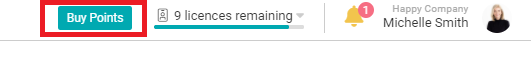 Points can be easily purchased by Applauz administrators. The button is right on the main navigation bar! Applauz Points are considered your recognition currency and will bring your recognition program to the next level. Points help get employees even more excited about using Applauz, as Points give employees the ability to shop for high-quality brand-named products in the Rewards Marketplace.