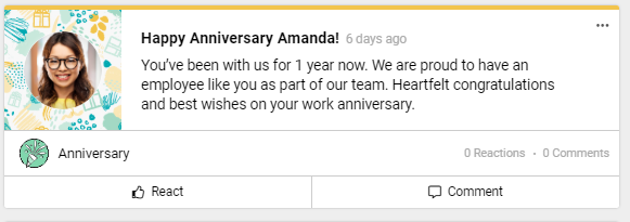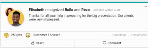 So, if you notice some employees are simply not participating, never push them in a way that is unnatural or uncomfortable. Instead, remind all employees that even if they don’t feel comfortable offering recognition yet, they can always ‘react’ to Newsfeed activity by ‘liking’ or commenting. This gentle nudging will help employees ease into the program.