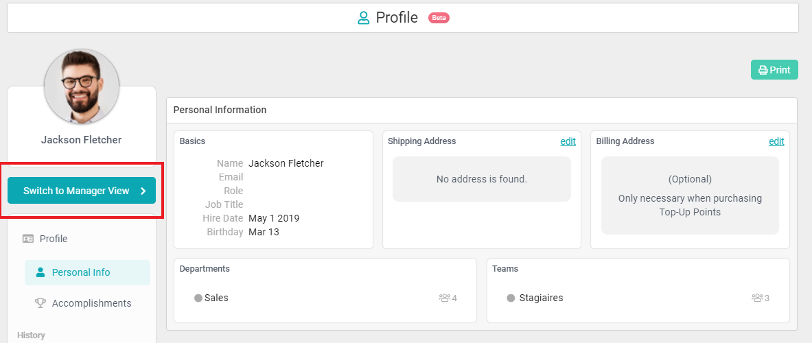 Managers can access participation data for their departments through the “Manager’s View” found on their Applauz Profile. Here, they will see all the most important participation insights for their department.