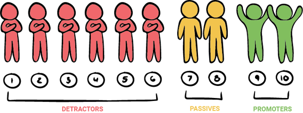 Responses are grouped into one of three buckets: promoters, detractors, and passives.